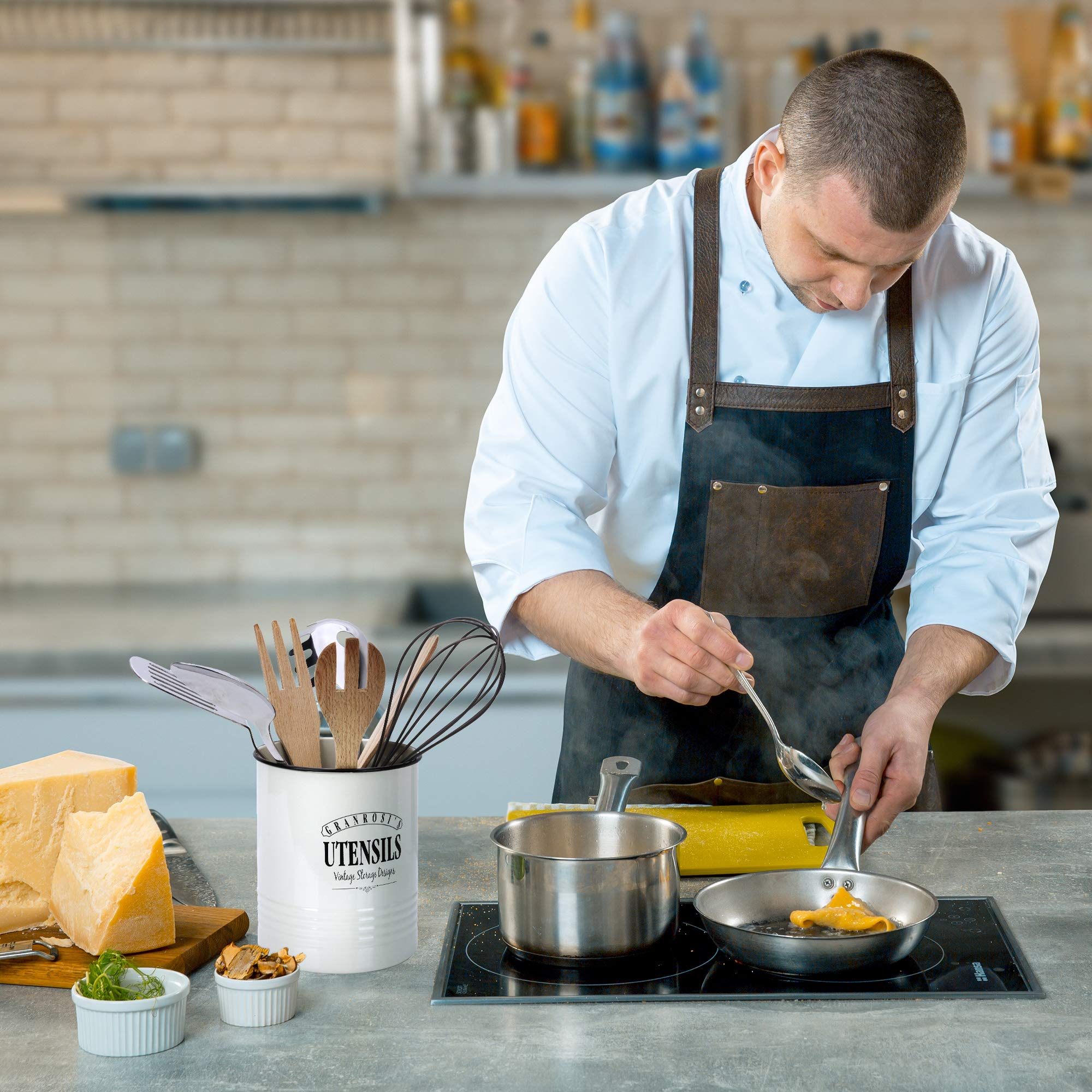 Decorate and keep all of your cooking tools within an arm's reach with this white metal utensil holder.